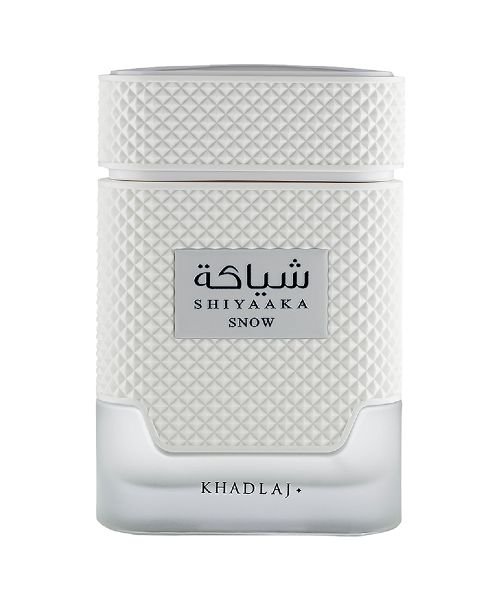 Shiyaaka Snow by Khadlaj, launched in 2025. The scent opens with vibrant Mandarin Orange, Citrus Notes, and Bergamot, followed by a spicy heart of Neroli, Nutmeg, and Pink Pepper. Finally, it settles into a warm and lasting base of Indonesian Vetiver Oil and Cardamom.